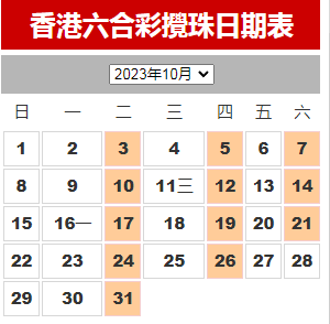 2023年10月份【搅珠日期表查询】